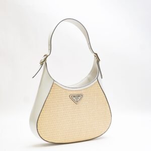 Prada Raffia Cleo Shoulder Bag Tan White